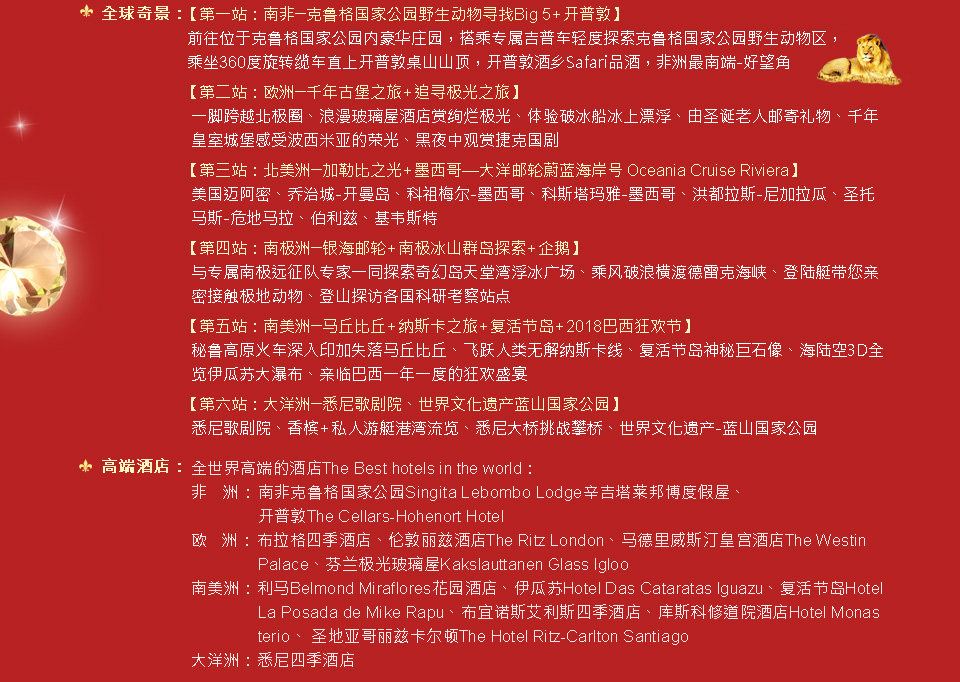 *邮轮将会依照实际天候海象决定航行顺序及参观景点。 |